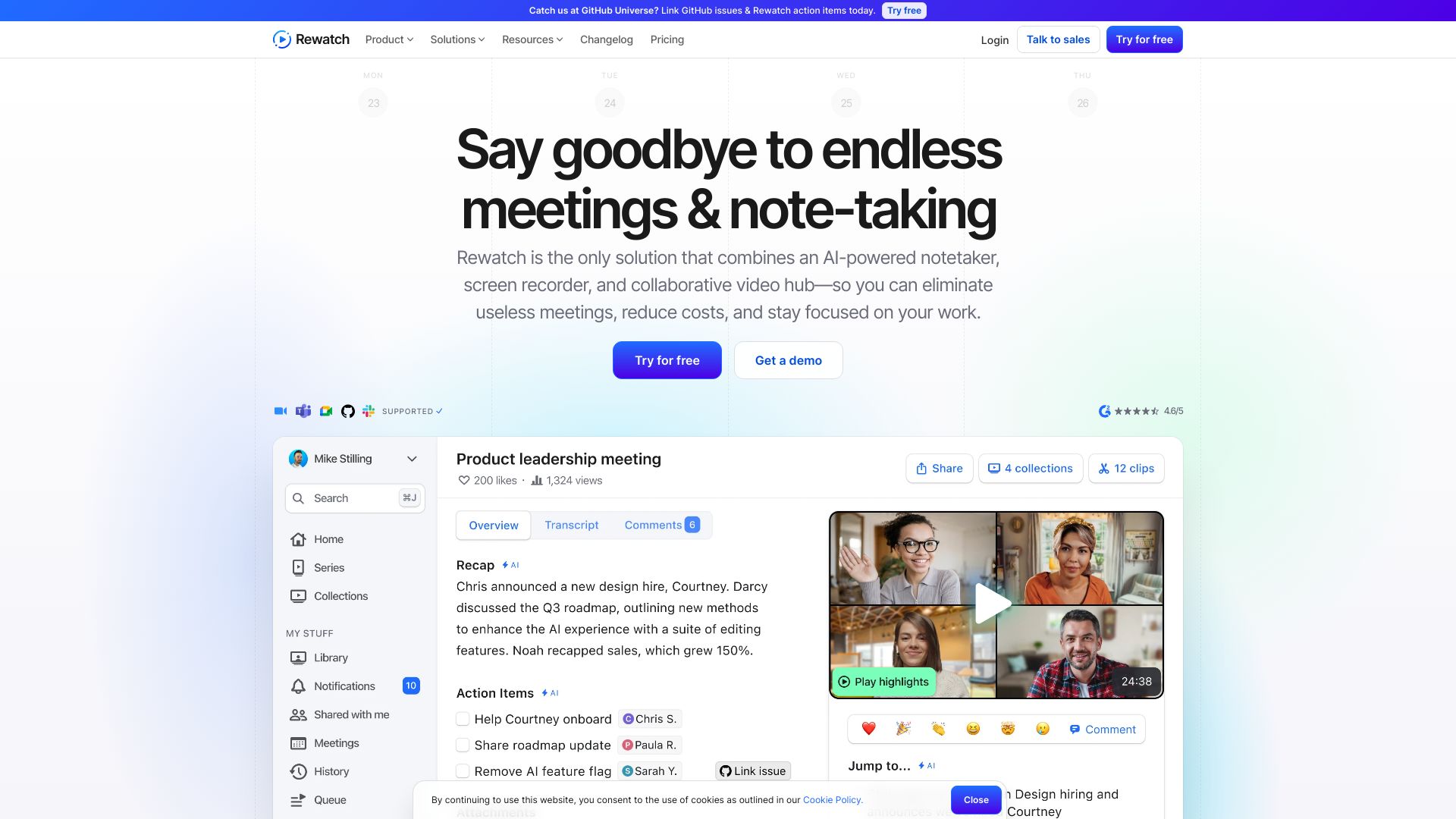 AI-powered meeting platform with notetaker, screen recorder, and video hub.