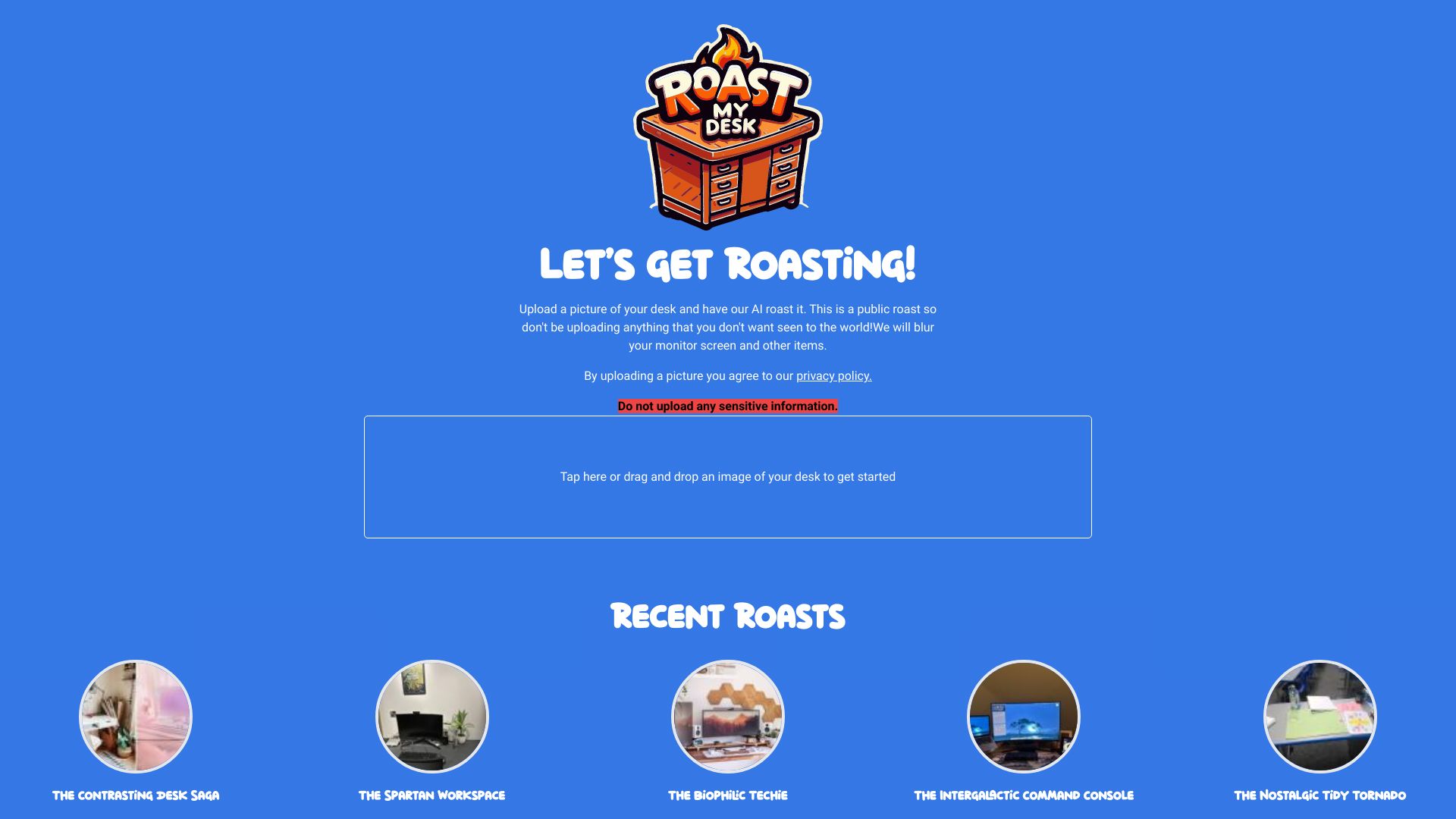 An app to upload desk pictures and have them roasted by AI.