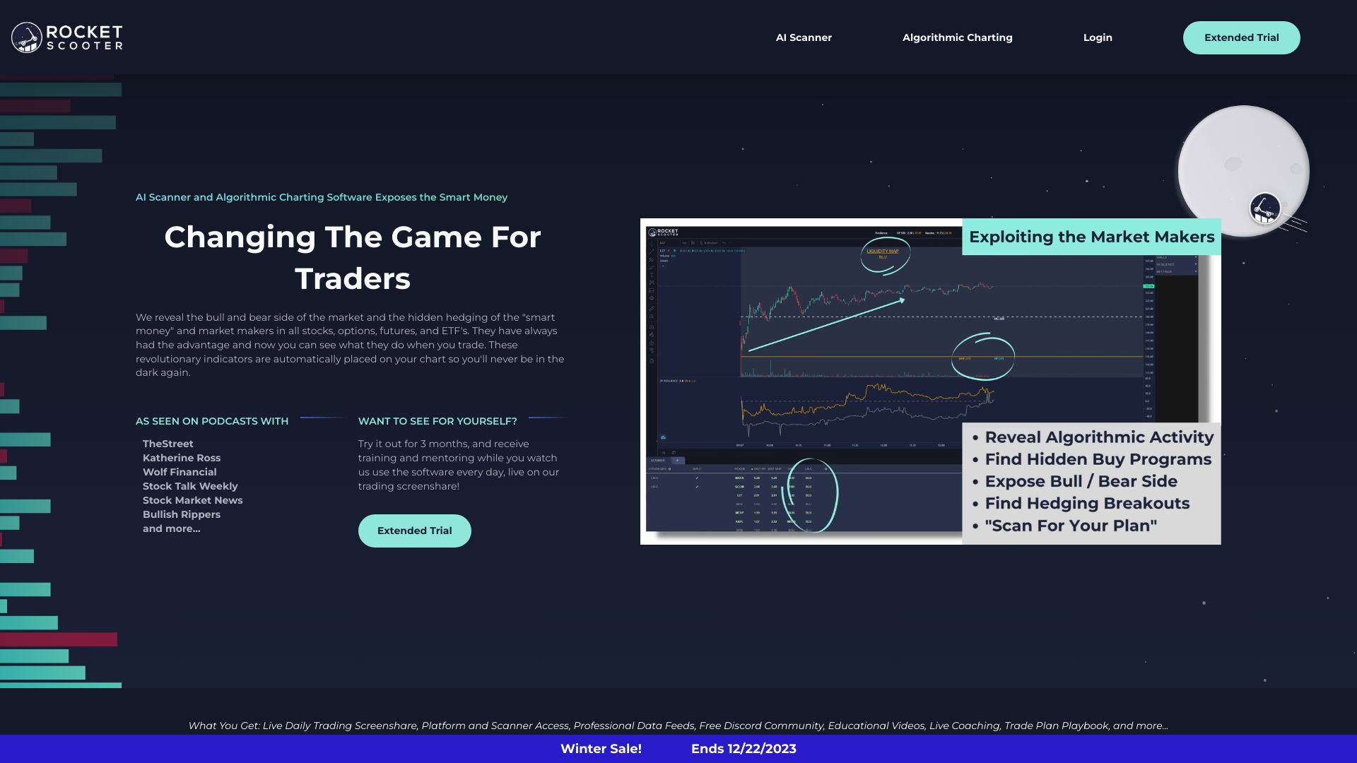 Automated trading software with AI scanner revealing smart money positions in various markets.