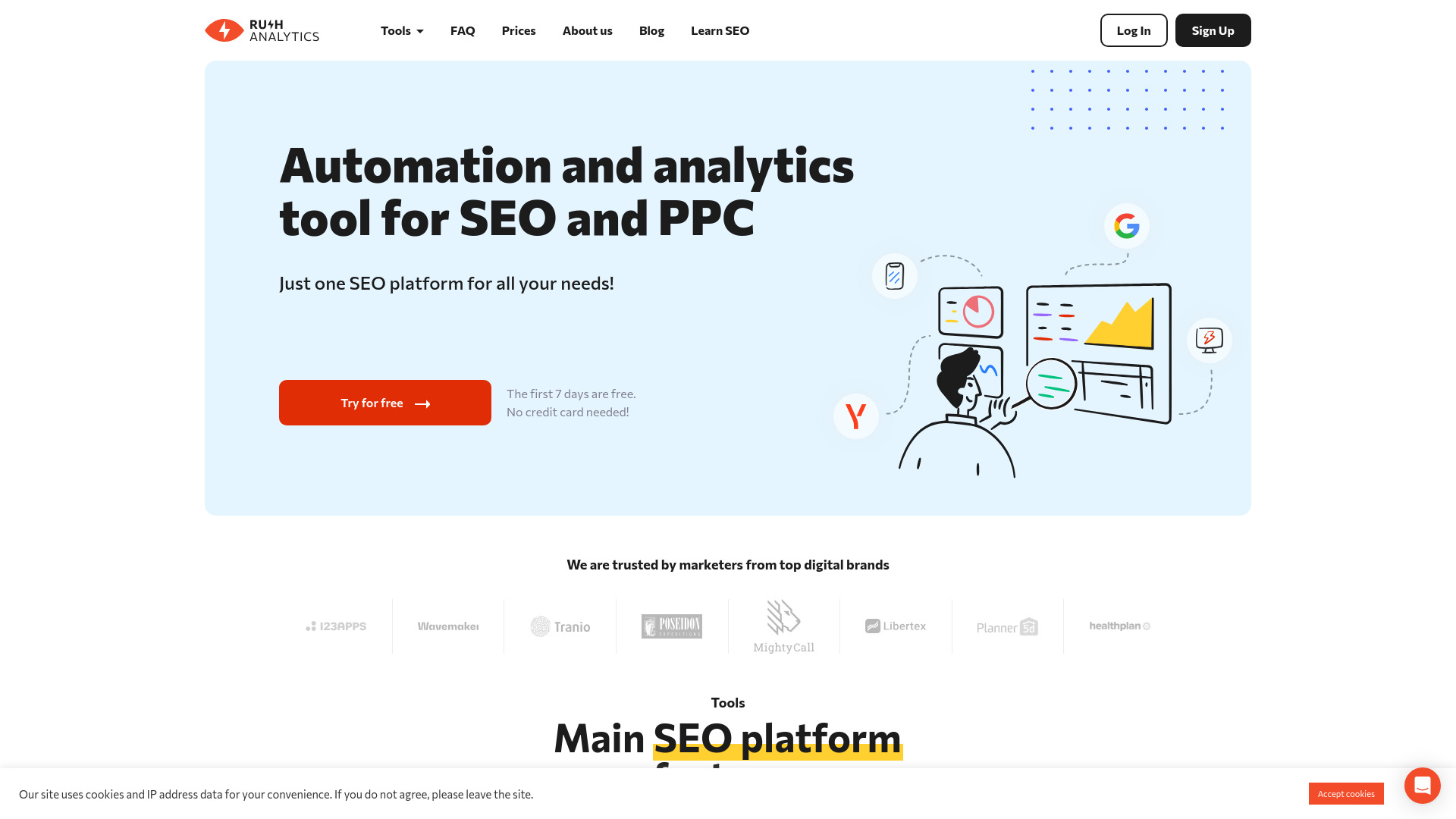 SEO automation and analytics tool for rank tracking, keyword research, site audit, and PBN analysis.