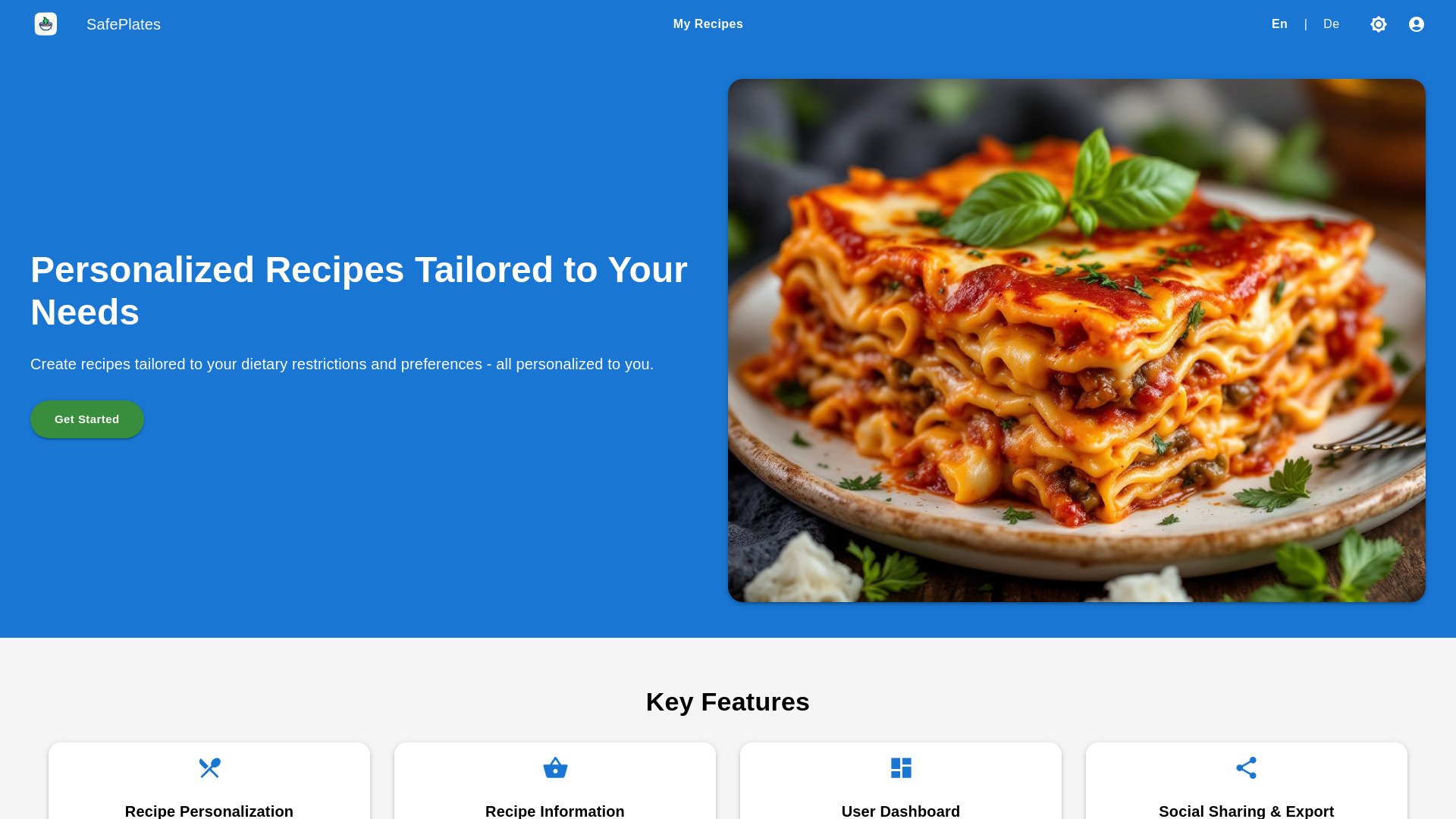 SafePlates is a personalized recipe generator tailored to dietary needs and preferences.