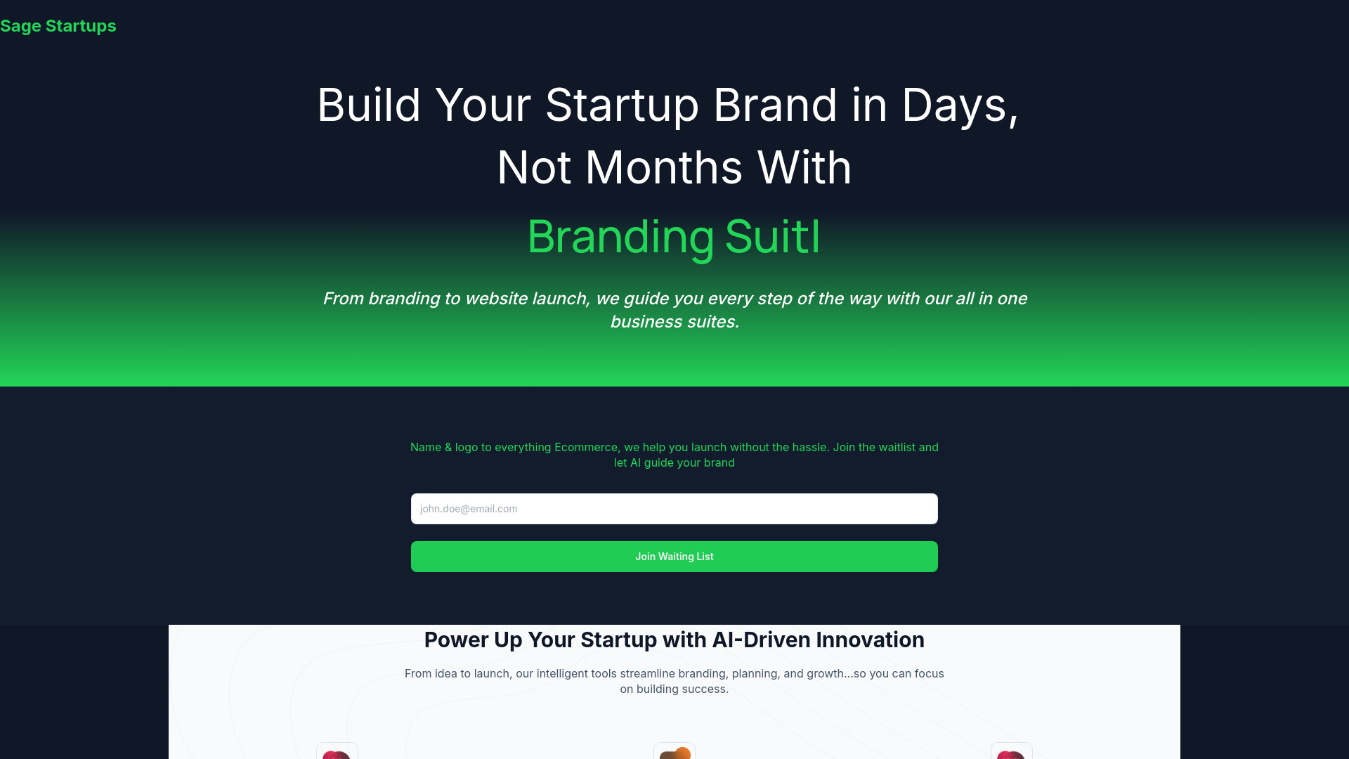AI-powered platform for startup planning, branding, marketing, and launching.