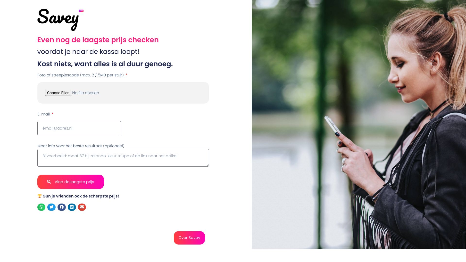 Savey finds the lowest price for products by searching for the cheapest provider.