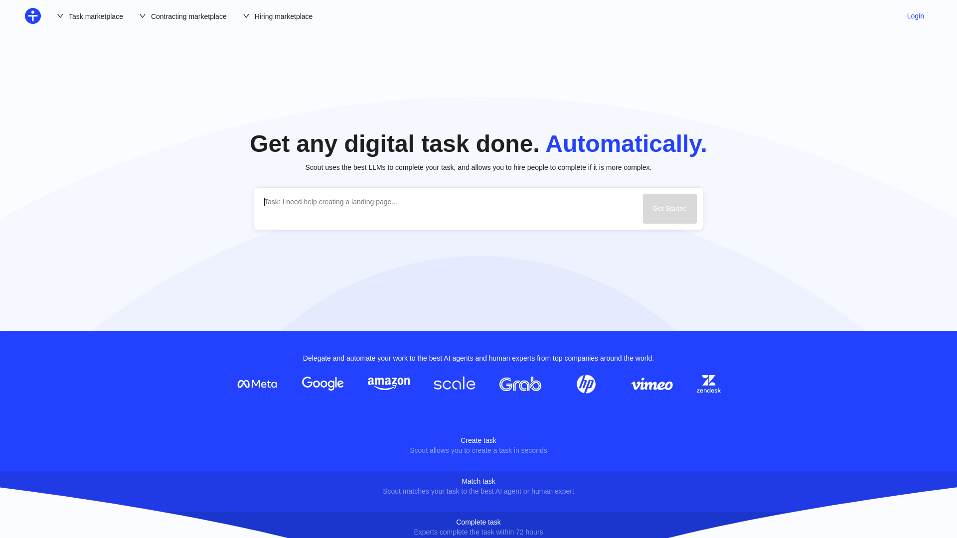 Scout AI matches tasks with AI agents or human experts for tailored support.