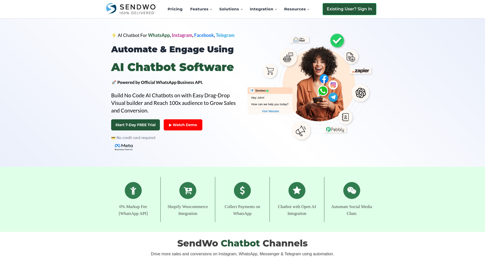 AI WhatsApp chatbot software for scaling sales, automating support, and managing customer communication.