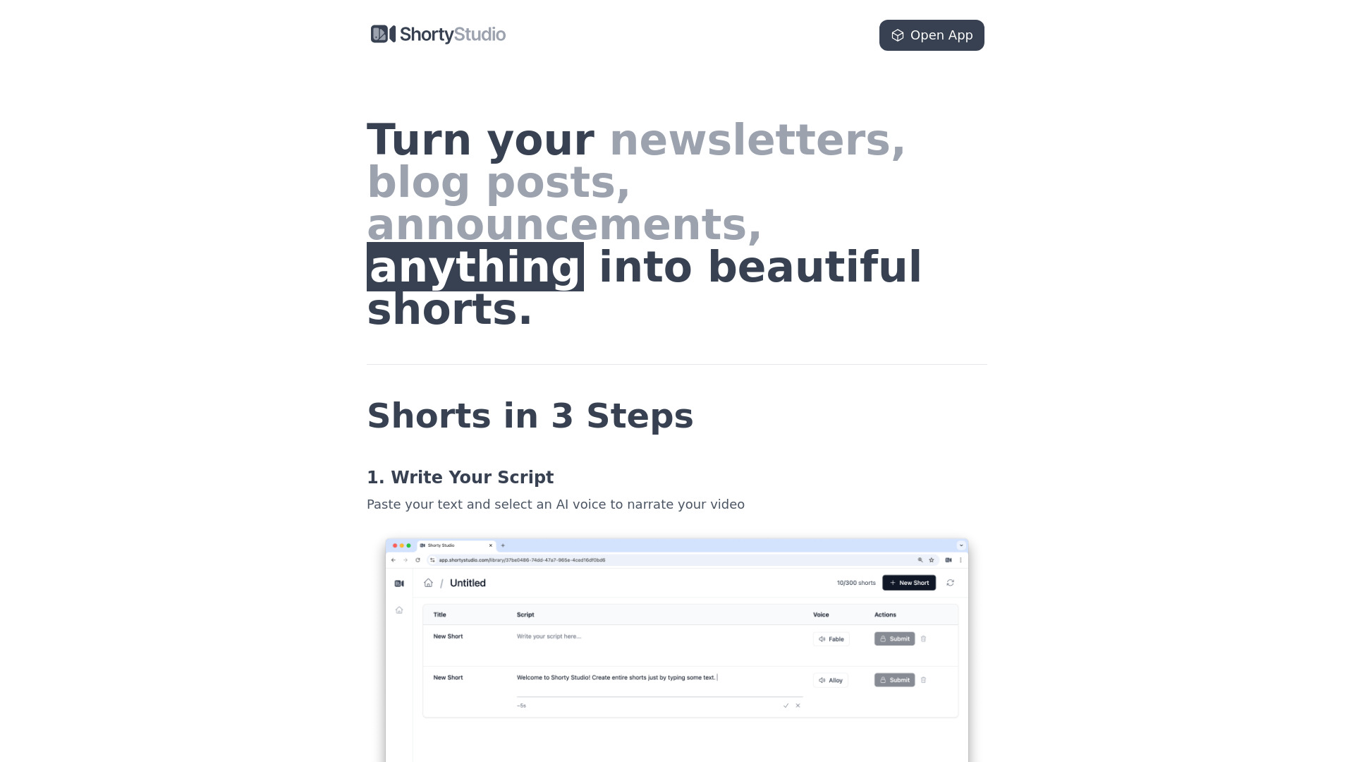 Shorty Studio turns text into AI-powered video shorts for social media.
