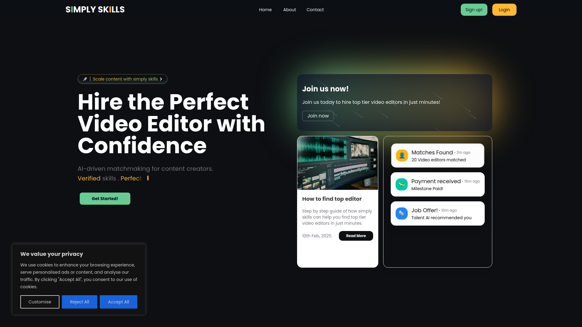 AI-powered platform connecting content creators with verified video editors for efficient hiring.