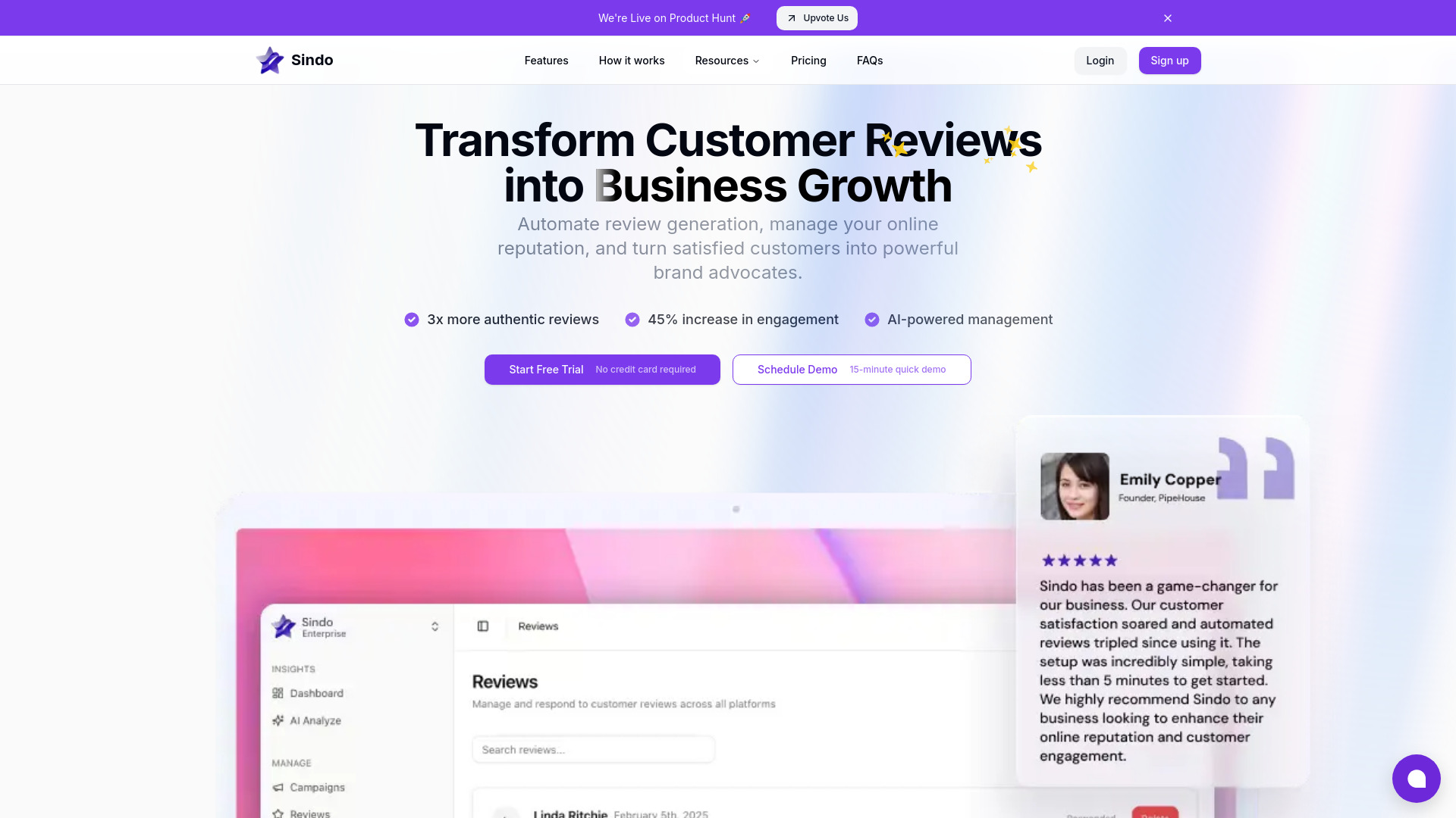 AI-powered platform to automate customer review collection, management, and sharing for business growth.