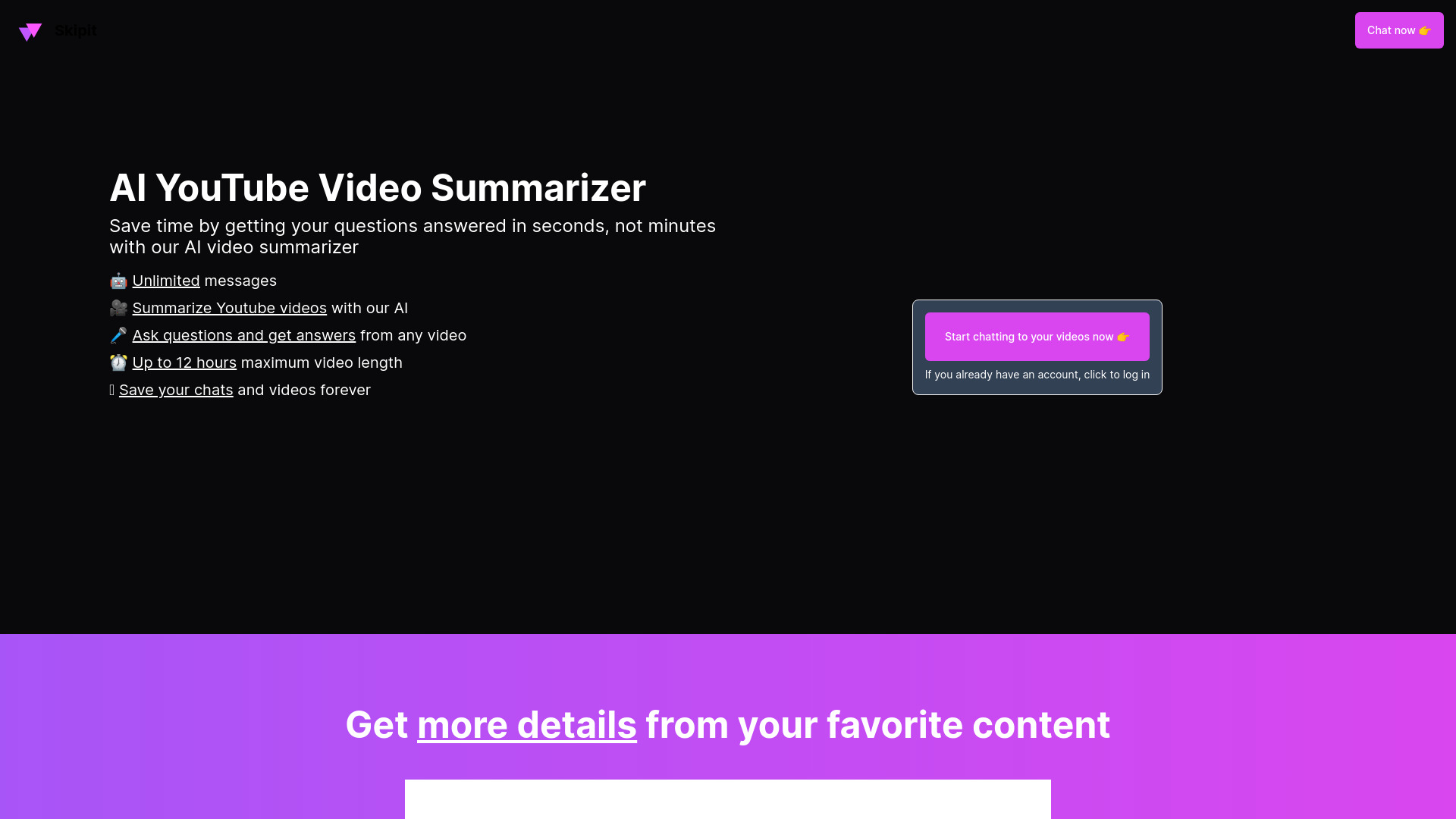 AI-powered YouTube video summarizer for instant summaries and answers.