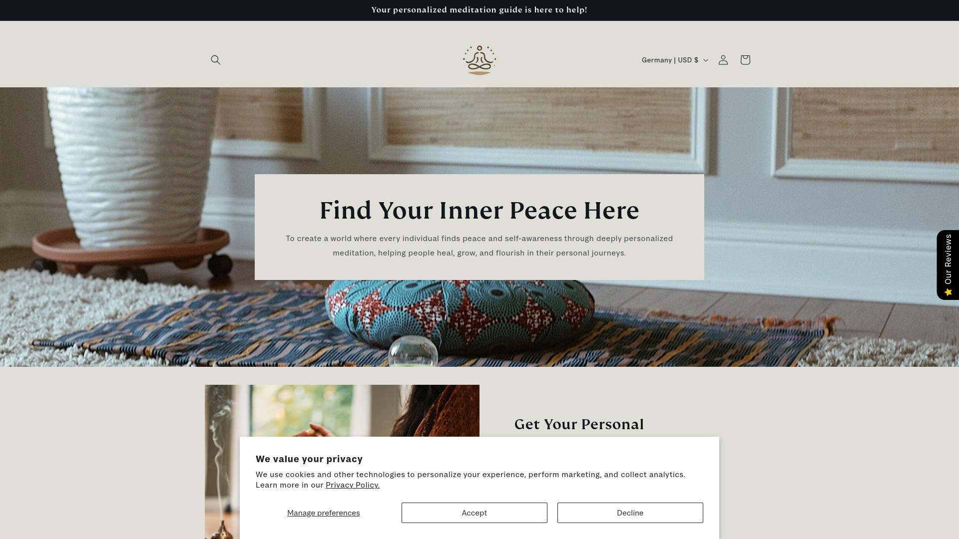 Personalized meditation guides and products using AI for stress reduction and mindfulness.