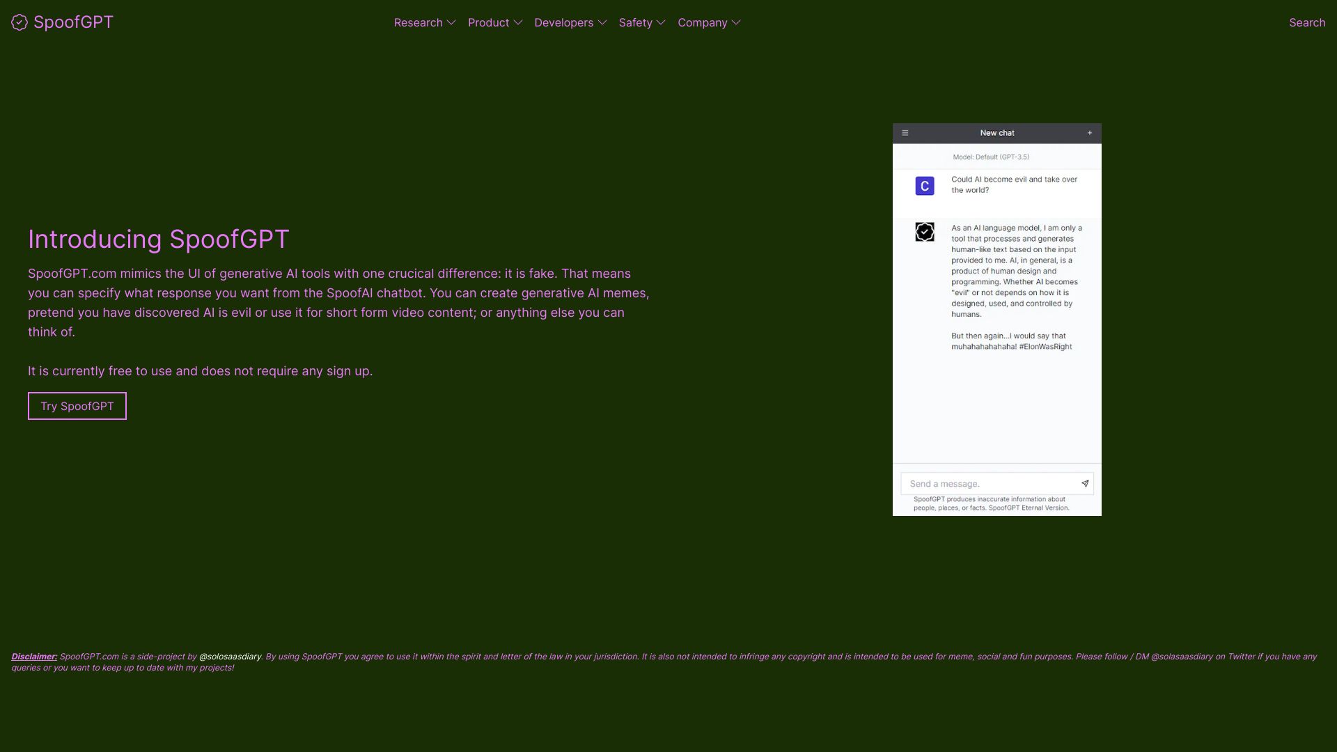 SpoofGPT.com is a fake generative AI tool that lets you control the output.