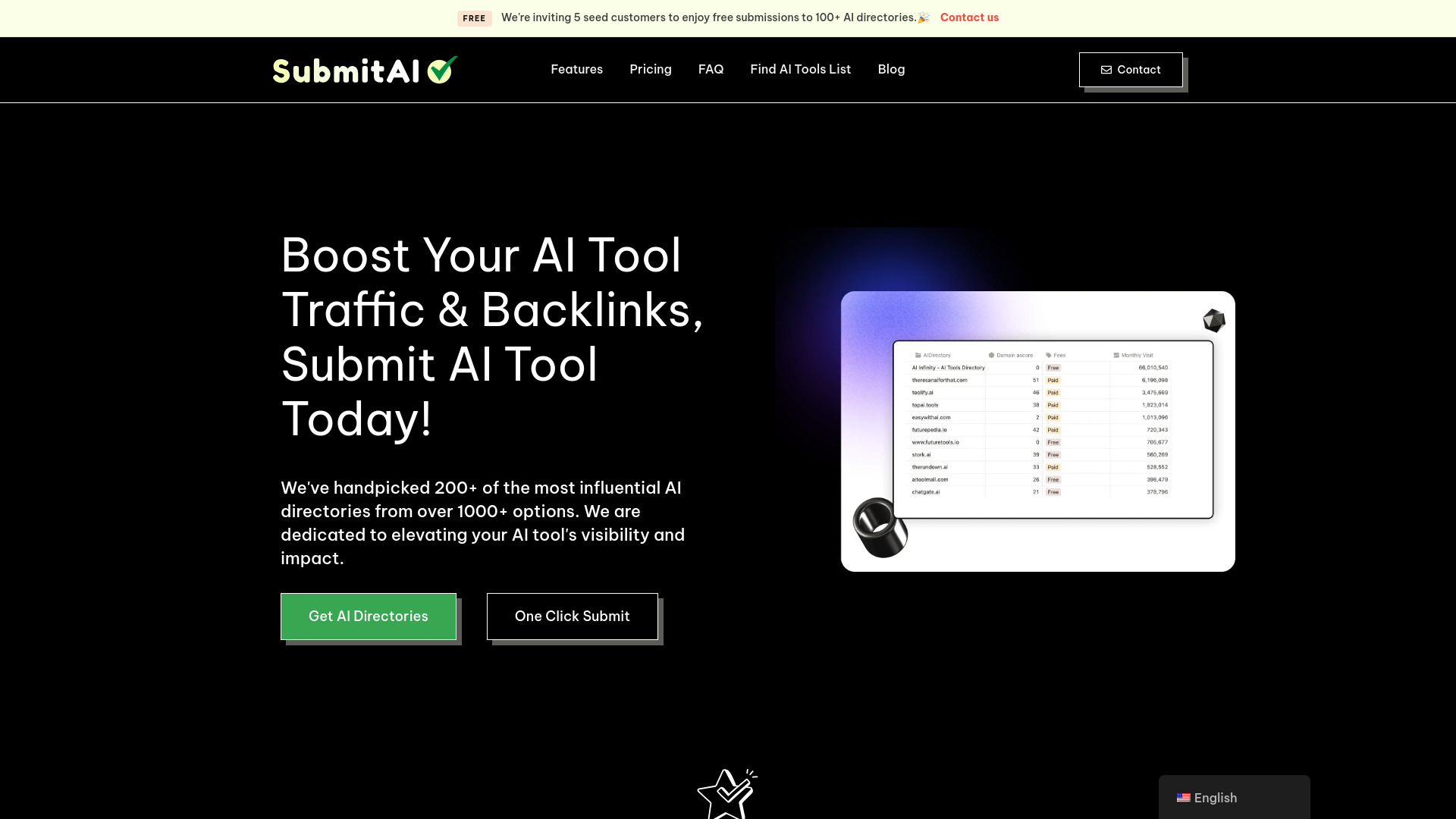 SubmitAI helps promote AI products to 100+ AI directories for increased exposure and SEO.