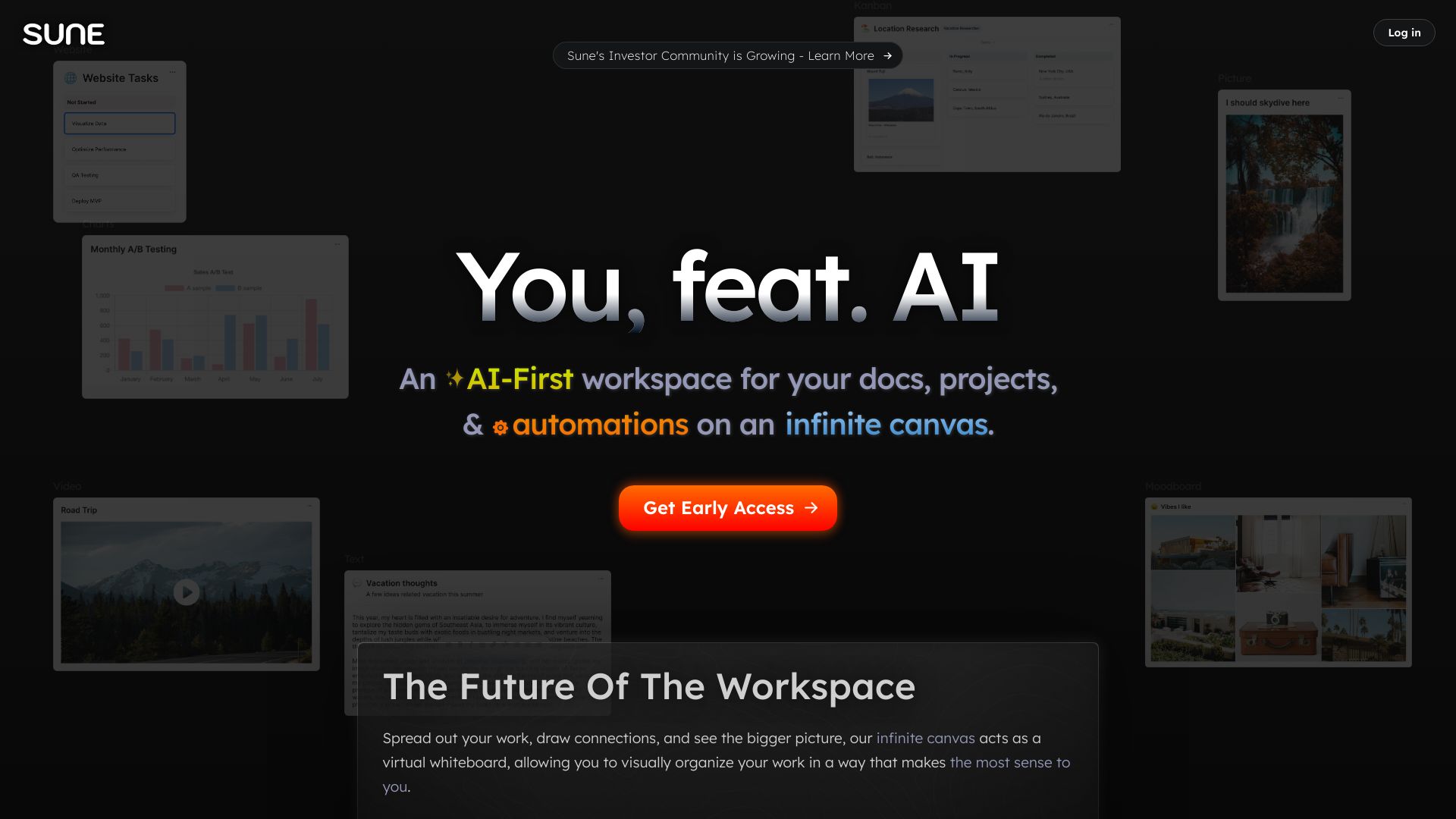 Sune AI is an AI-powered workspace for collaborative document creation, project management, and task automation.