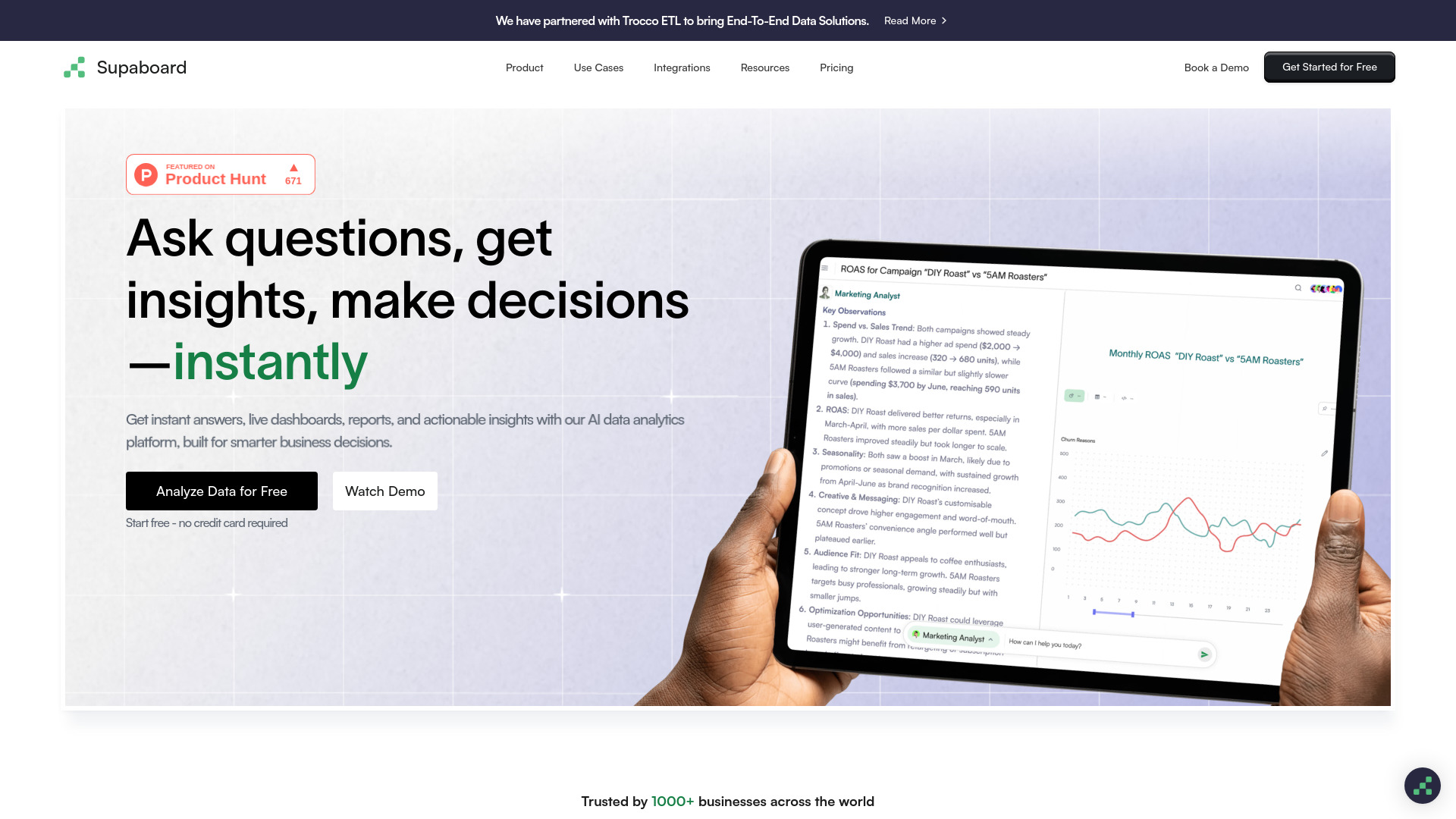 AI-powered BI tool for building dashboards and analyzing data without expertise.