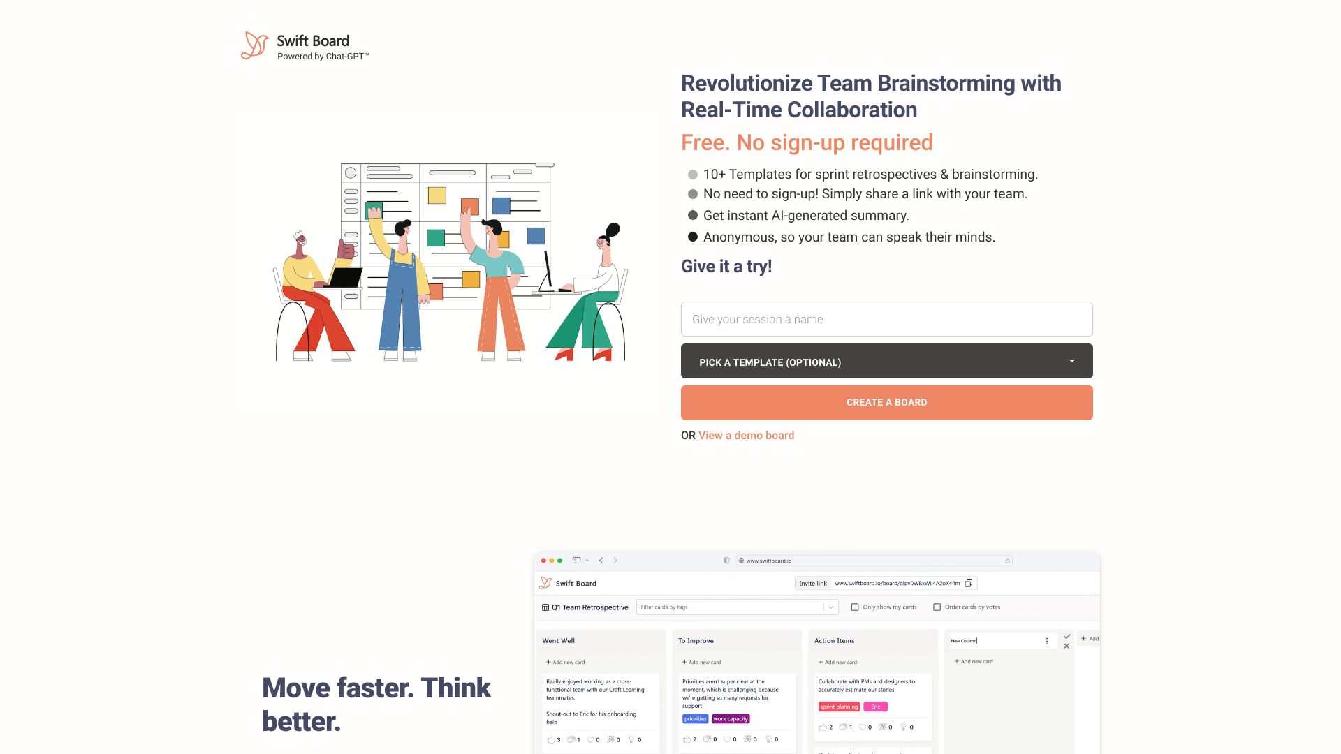AI-powered brainstorming and sprint retrospective tool with real-time collaboration and no sign-up.