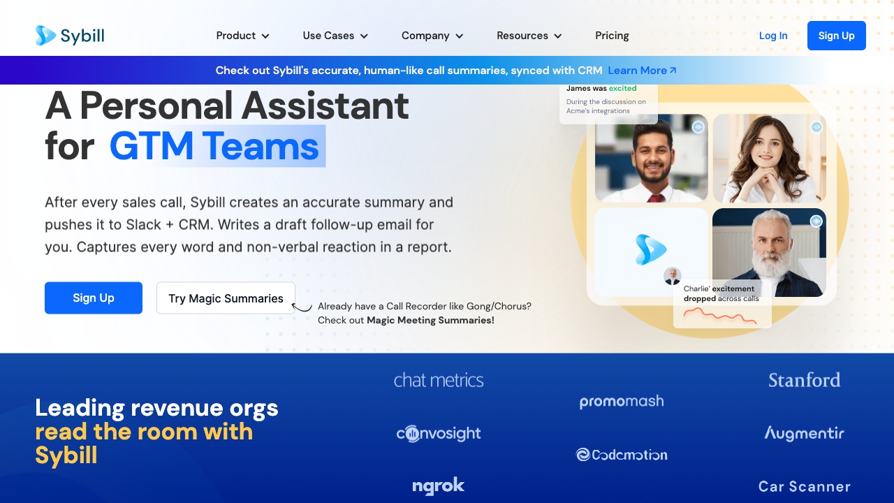 AI sales assistant for call summaries, CRM updates, and follow-up emails.