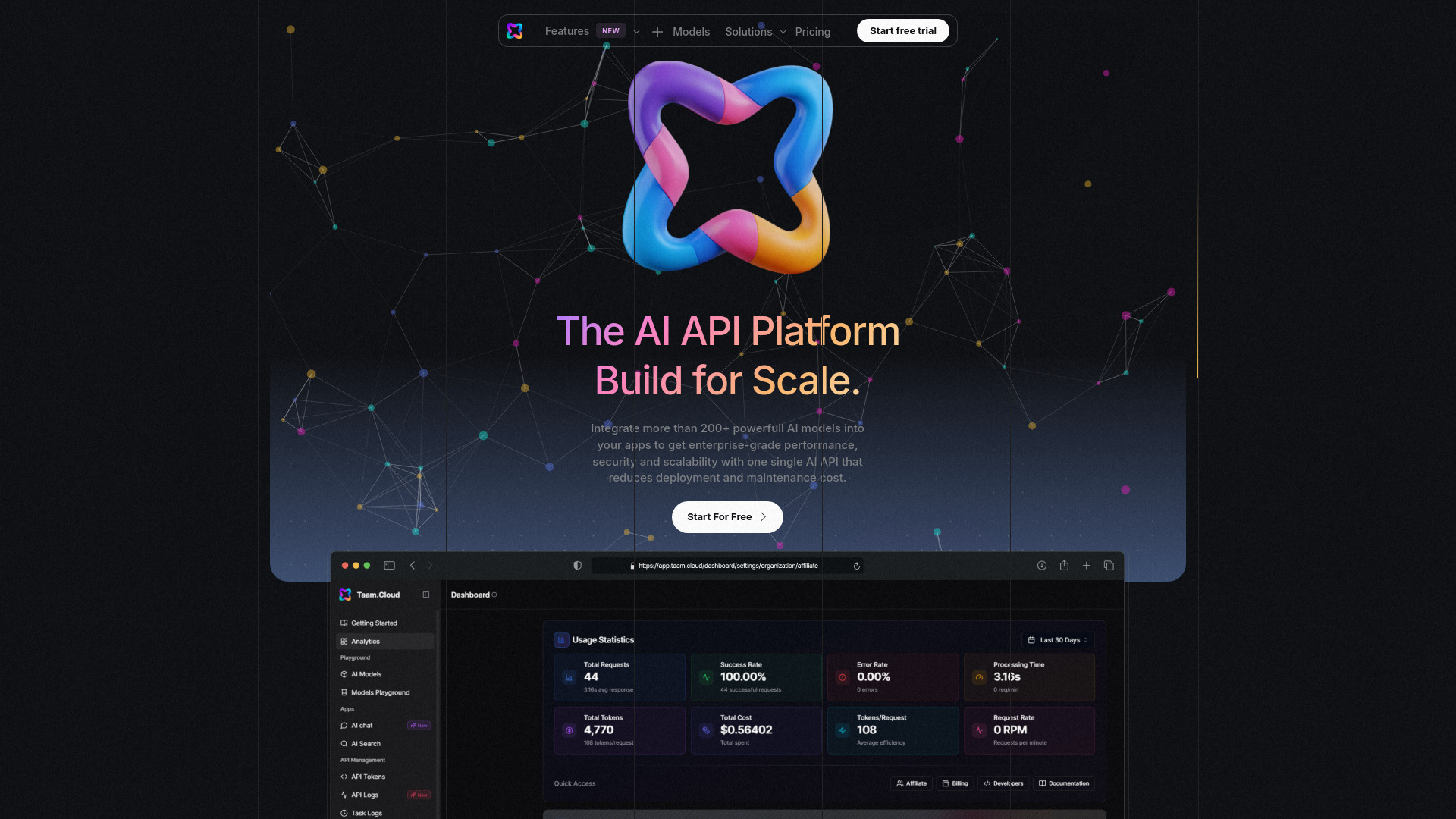 AI API platform simplifying AI model integration, observability, and automation with 200+ models.