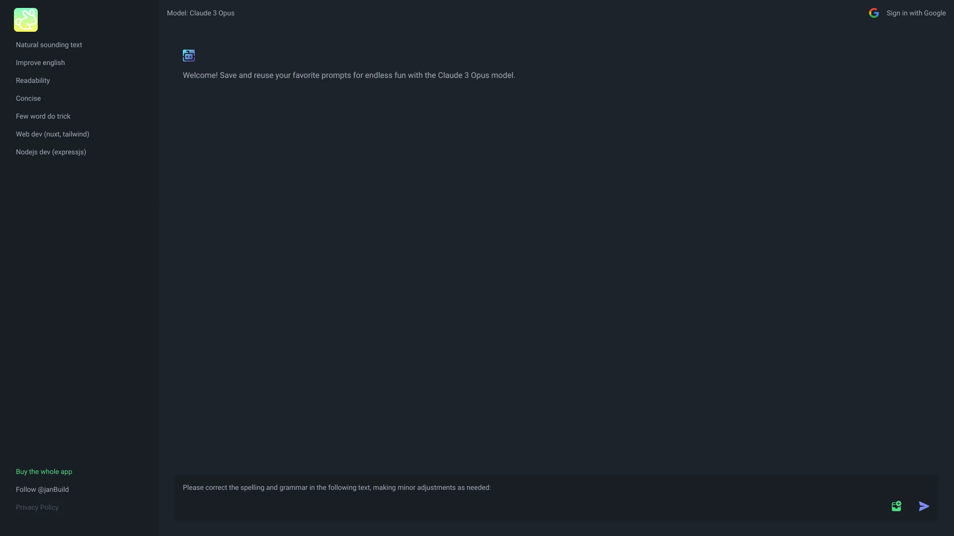 Anthropic's AI assistant for chatting, saving prompts, and improving text.