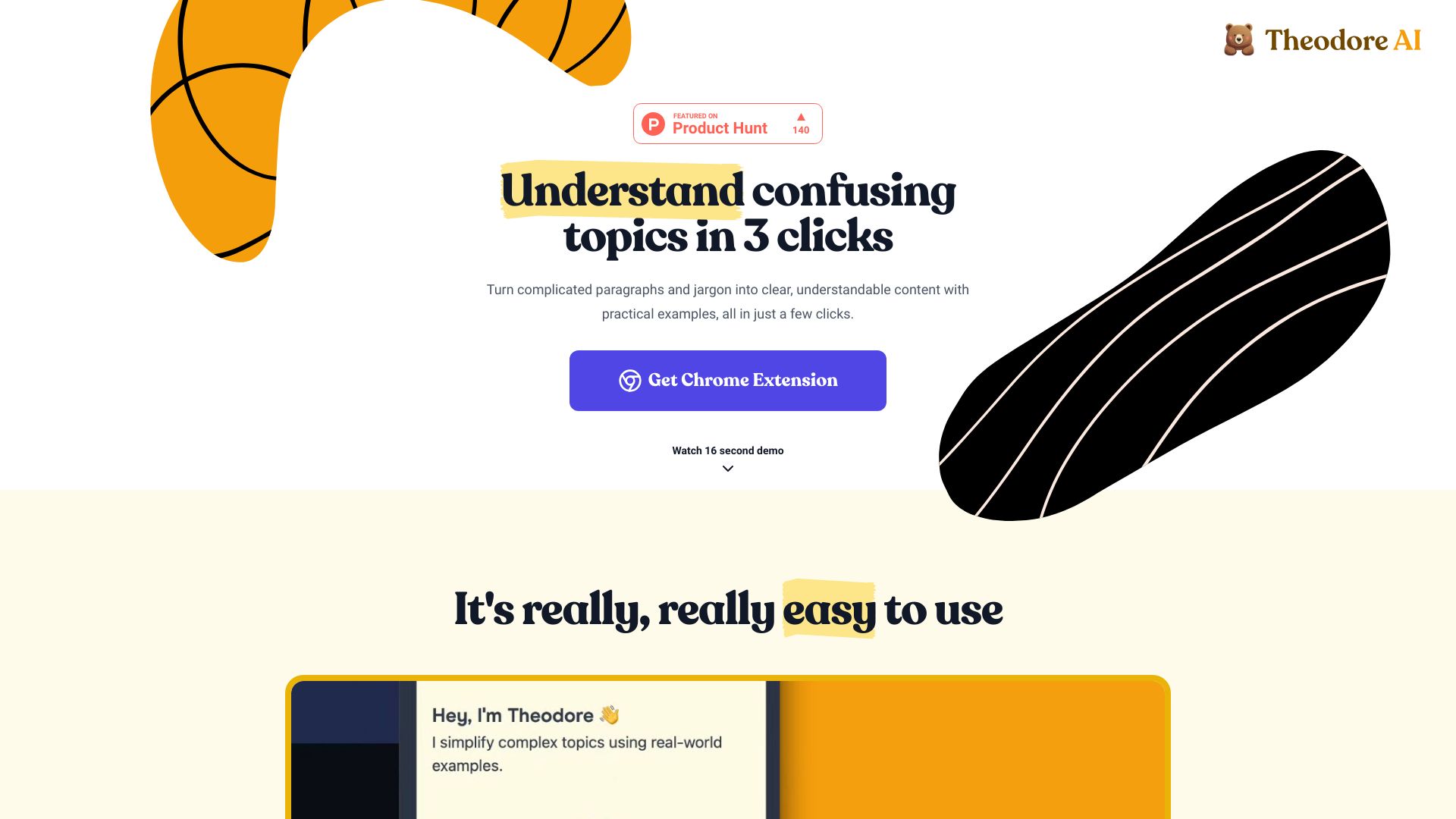 Theodore AI simplifies complex text into clear, understandable content with examples.
