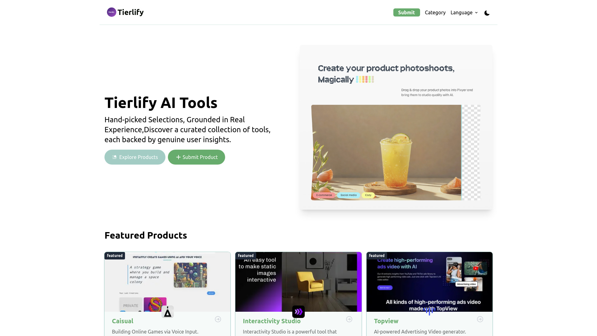 Tierlify is a curated collection of AI tools with user insights.
