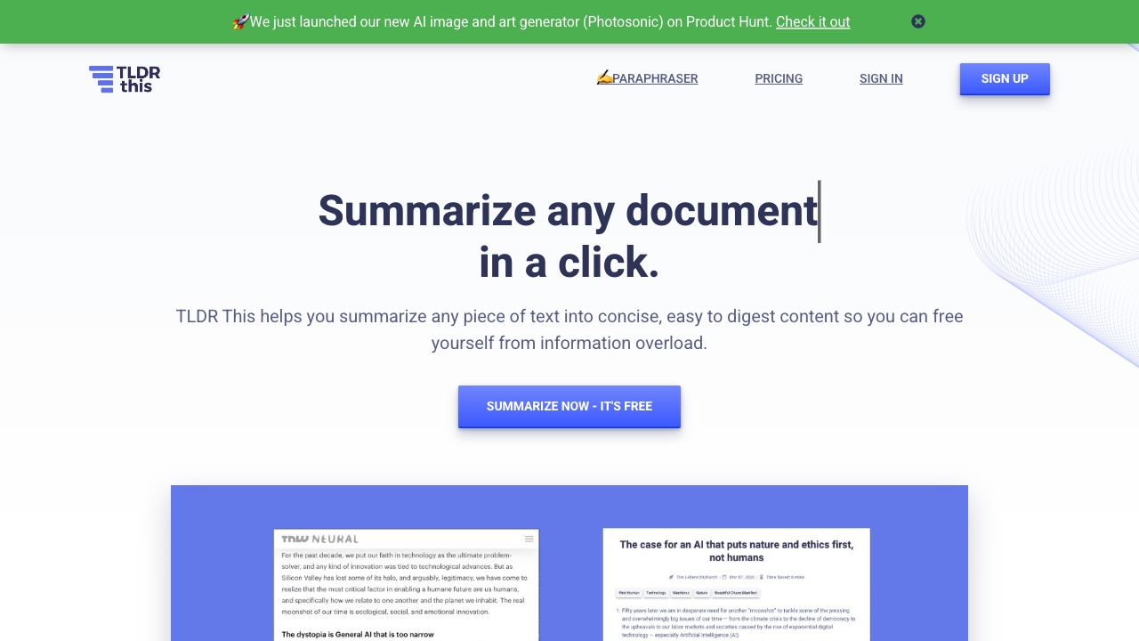 Free AI-powered tool for summarizing articles and extracting key information.