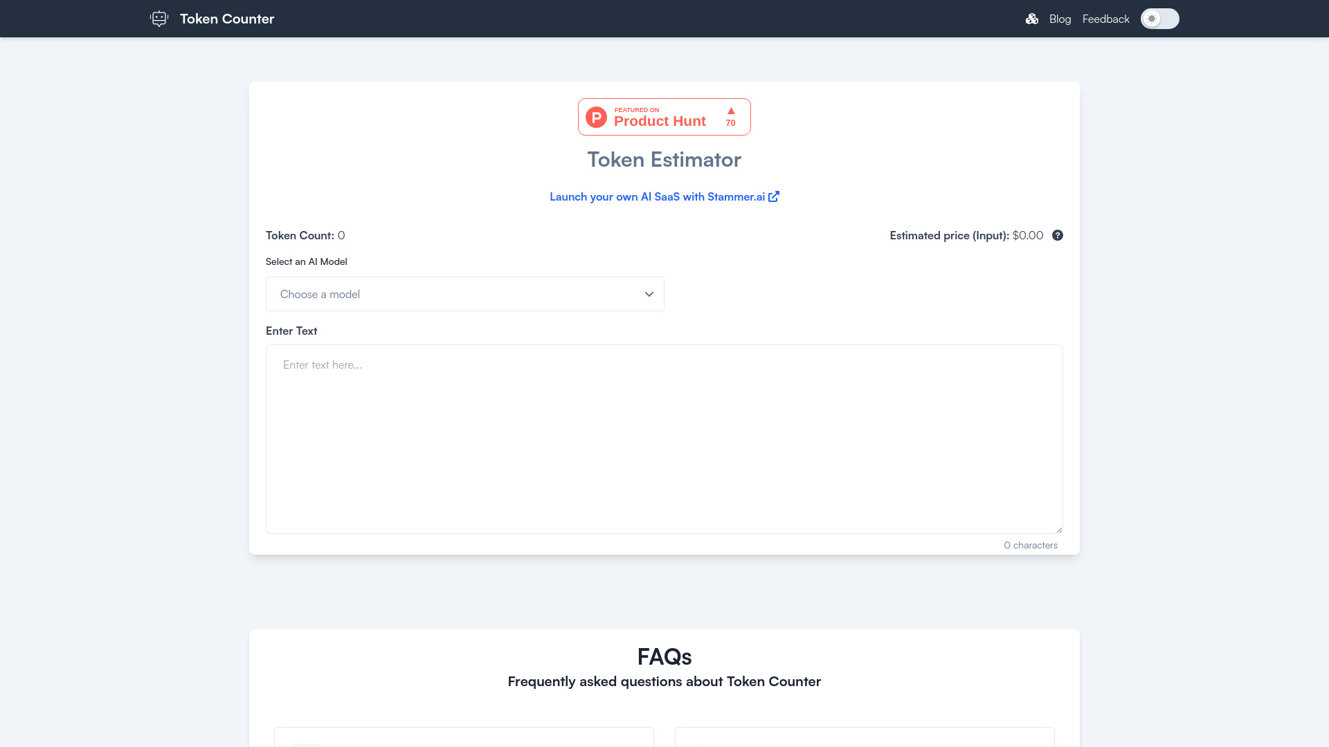 A tool to count tokens and estimate costs for AI models.