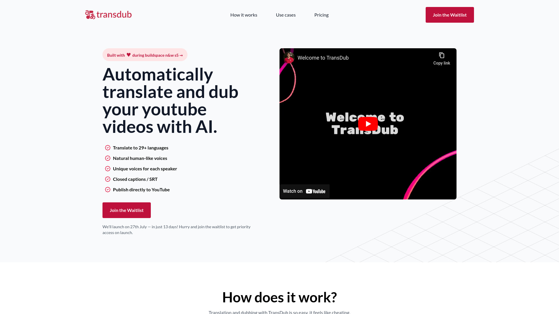 AI-powered translation and dubbing for YouTube videos.