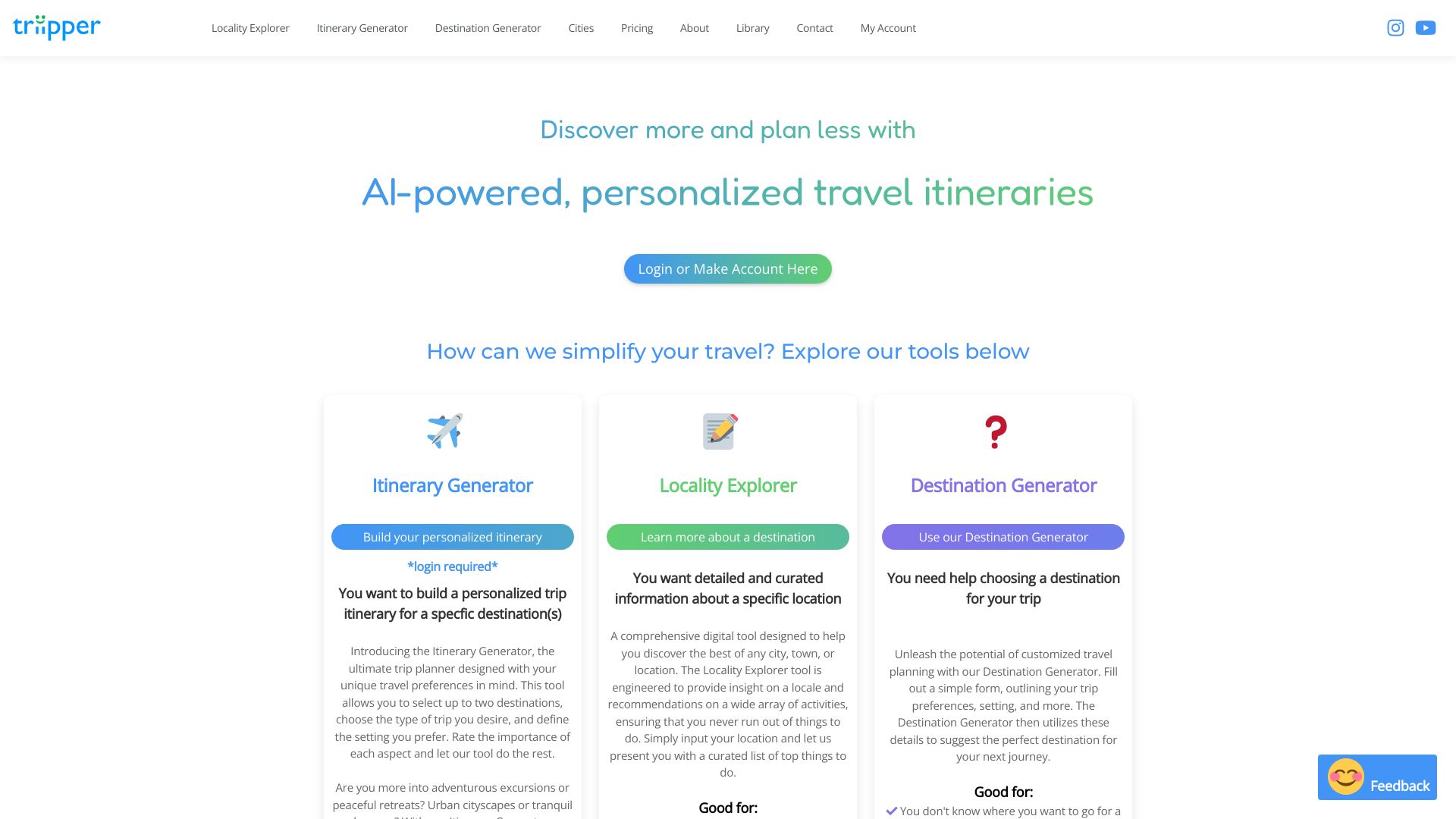 AI-powered personalized travel planning platform with itinerary generation and exploration tools.
