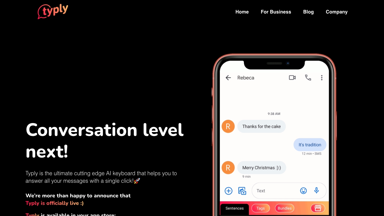 Typly is an AI keyboard that generates context-aware message replies with a single click.