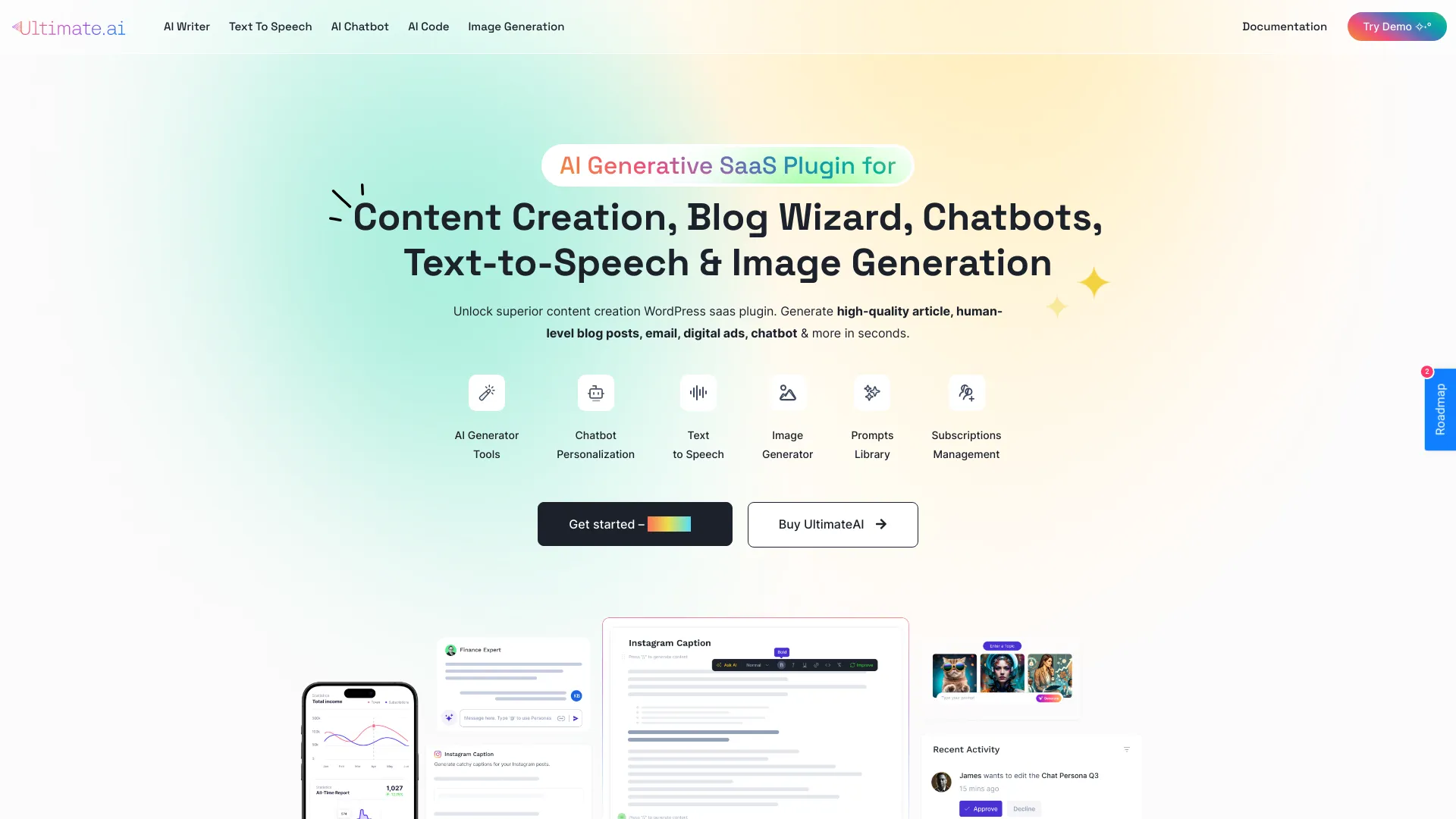 AI content creation platform with text, image, video, chat, voice, and code generation.