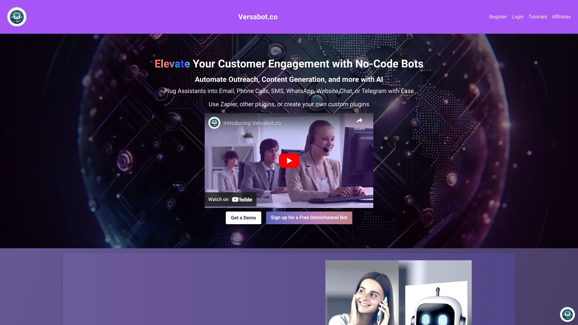 Versabot automates omnichannel outreach, content generation, and customer service using AI-powered bots.