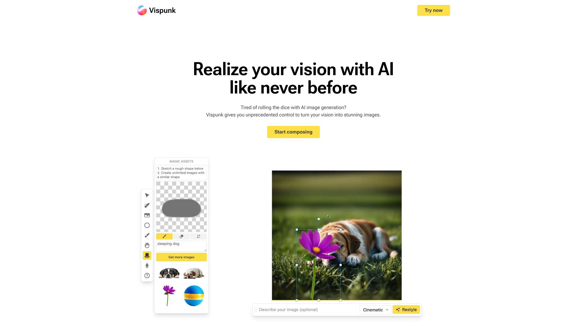 Vispunk uses AI to generate images from composed scenes on a canvas.