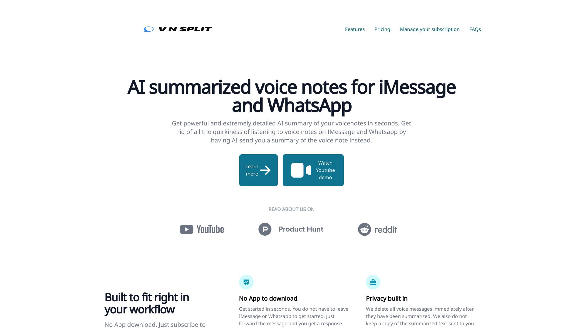 AI-powered service summarizing voice notes from iMessage and WhatsApp.
