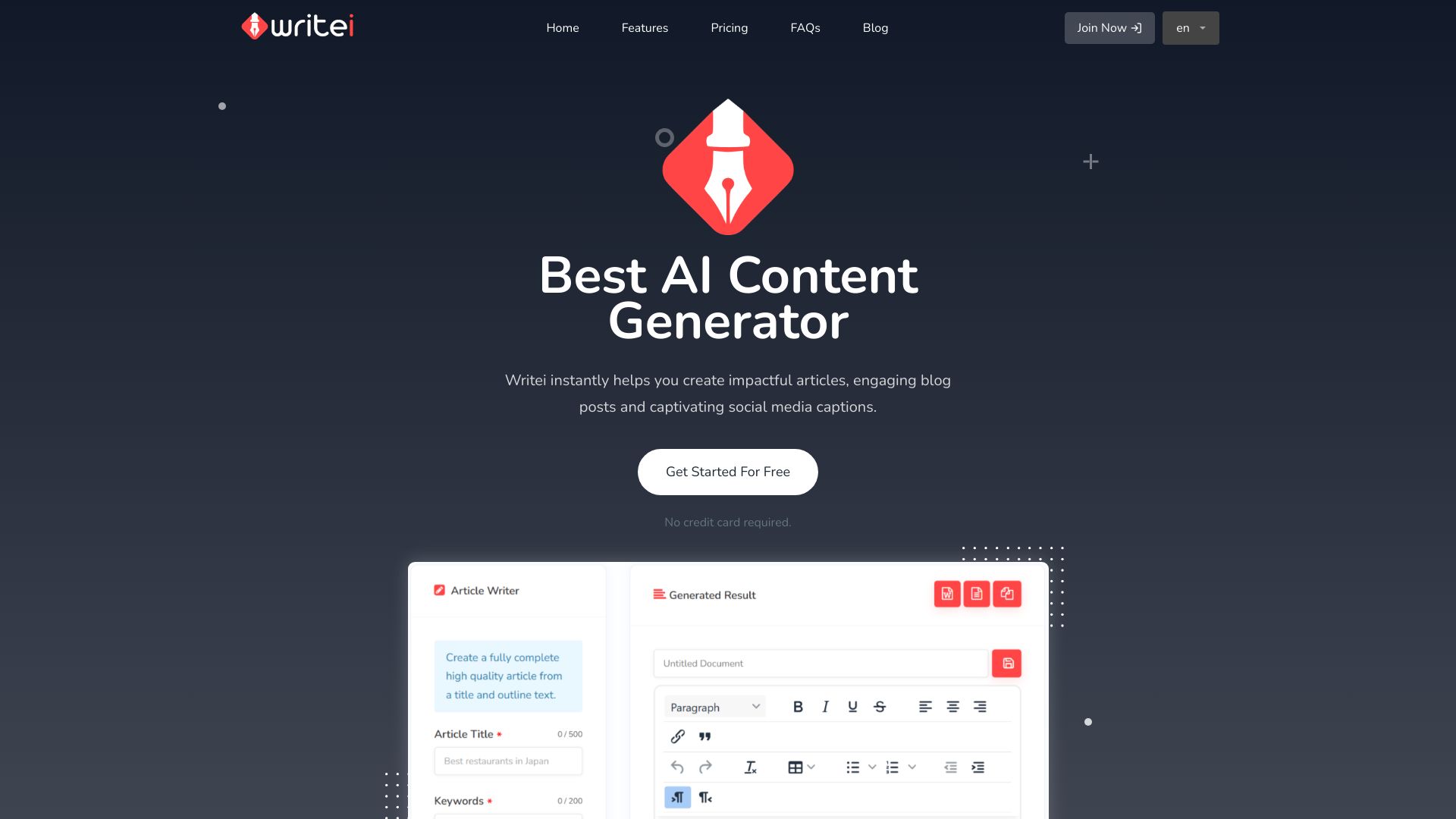 AI writing assistant for articles, blog posts, and social media captions with 246+ templates.