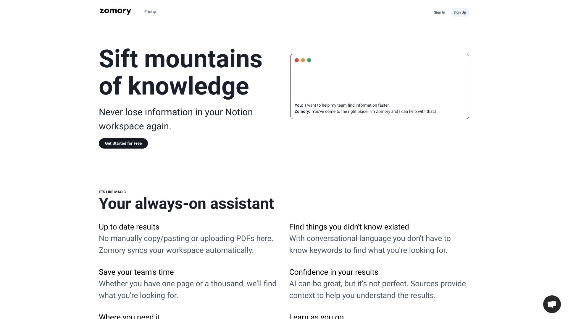 AI-powered search for Notion workspaces, enabling quick answers to team questions.